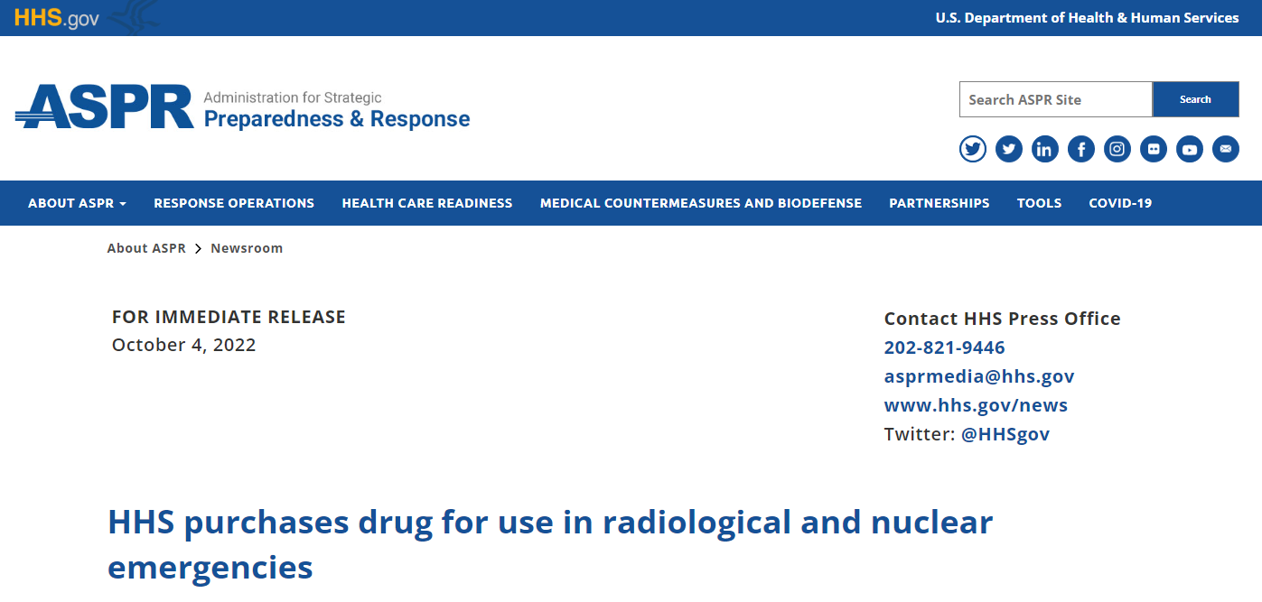 As part of long-standing, ongoing efforts to be better prepared to save lives following radiological and nuclear emergencies, the U.S. Department of Health and Human Services is purchasing a supply of the drug Nplate from Amgen USA Inc; Nplate is approved to treat blood cell injuries that accompany acute radiation syndrome in adult and pediatric patients (ARS).