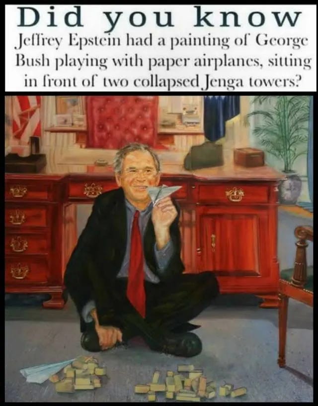 Let us set aside for the moment all the substantial details laid out by Richard Gage and others that make 9/11 look like something more than we were told. It is likely that any one of us has some details wrong, and lacks elements of the Bigger Picture—unless Dubya's reading, in which case I just want to leave this here.